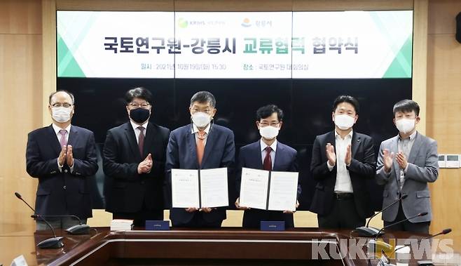 지난달 29일 한국철도기술연구원과 철도교통활성화를 위한 상생협력 업무협약을 체결한 데 이어, 강릉시는 19일 세종시 국토연구원에서 국토의 효율적 이용과 국가 균형발전에 기여하기 위하여 국토연구원과 업무협약을 체결했다.
