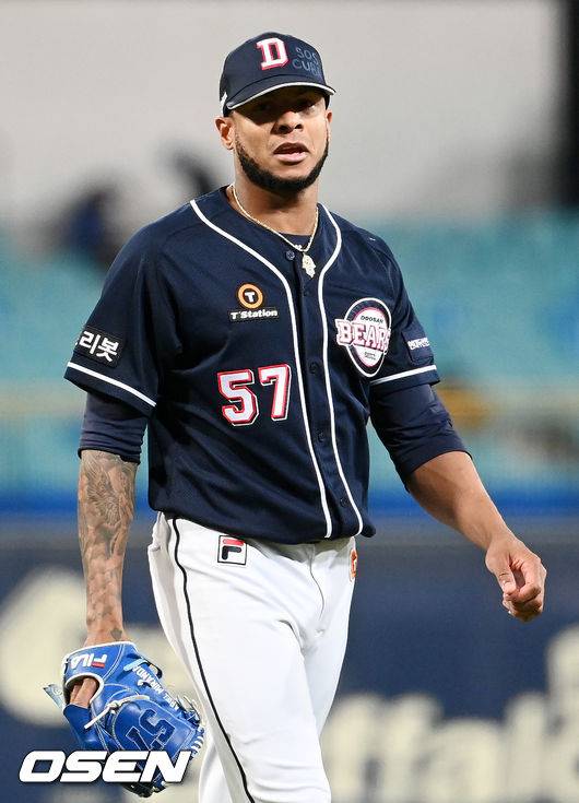 1회말을 마친 두산 선발 미란다가 덕아웃으로 들어오며 소리를 치고 있다. 2021.10.19 / rumi@osen.co.kr