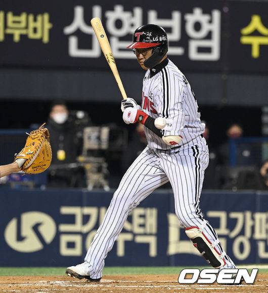 4회말 1사 1루 상황 LG 채은성이 키움 선발 안우진의 공에 몸을 맞고 있다. / dreamer@osen.co.kr