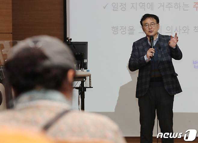 (대전=뉴스1) 김기태 기자 = 19일 대전 목원대학교에서 뉴스1 대전충남취재본부와 목원대학교 공동 주관으로 열린 뉴충청 리더 아카데미에서 곽현근 대전대학교 교수가 '주민주권과 풀뿌리민주주의'란 주제로 강의하고 있다. 2021.10.19/뉴스1