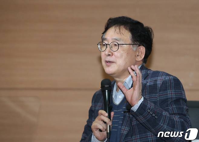 (대전=뉴스1) 김기태 기자 = 19일 대전 목원대학교에서 뉴스1 대전충남취재본부와 목원대학교 공동 주관으로 열린 뉴충청 리더 아카데미에서 곽현근 대전대학교 교수가 '주민주권과 풀뿌리민주주의'란 주제로 강의하고 있다. 2021.10.19/뉴스1