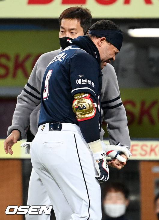 4회초 무사 주자 1루 두산 페르난데스가 타석에서 몸에 볼을 맞고 고통을 호소하고 있다. 2021.10.19 / rumi@osen.co.kr