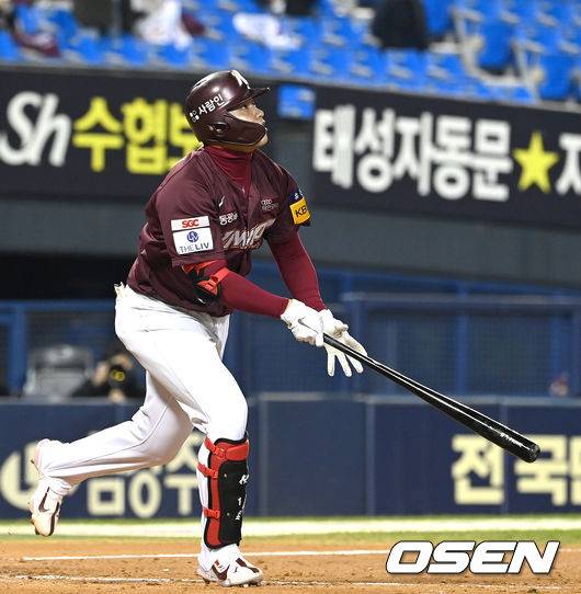 5회초 1사 1, 2루 상황 대타로 나선 키움 김웅빈이 달아나는 우월 스리런포를 날리고 있다. / dreamer@osen.co.kr