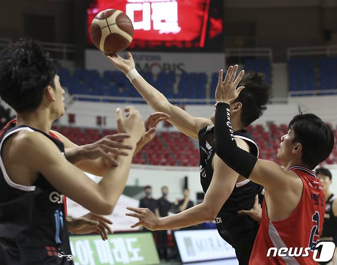 (울산=뉴스1) 윤일지 기자 = 19일 오후 울산 동천체육관에서 열린 '2021-2022 KGC인삼공사 정관장 프로농구' 울산 현대모비스와 서울 삼성의 경기에서 삼성 이동엽이 레이업슛을 하고 있다. 2021.10.19/뉴스1