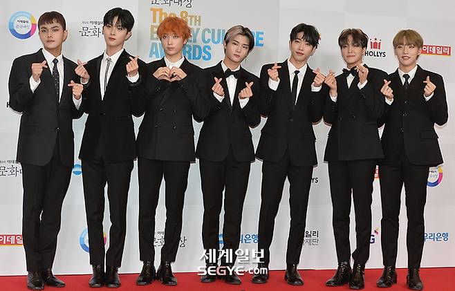 그룹 킹덤이 19일 오후 서울 종로구 광화문 세종문화회관에서 열린 '제8회 이데일리 문화대상' 레드카펫에 참석해 포즈를 취하고 있다.