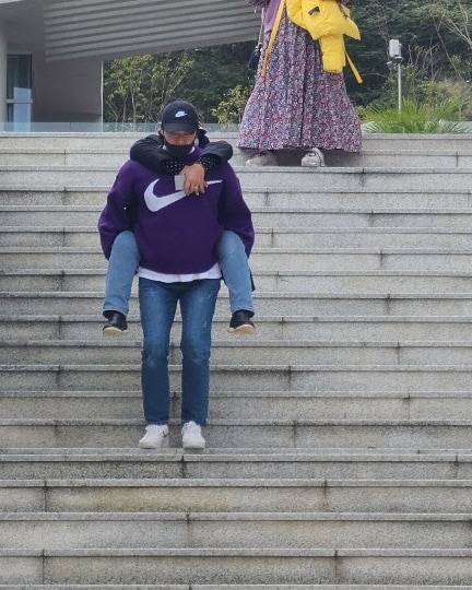 공개된 사진 속에는 다리 아픈 어머니를 등에 엎고 계단을 내려오고 있는 김원효의 모습이 담겨 훈훈함을 더했다.
