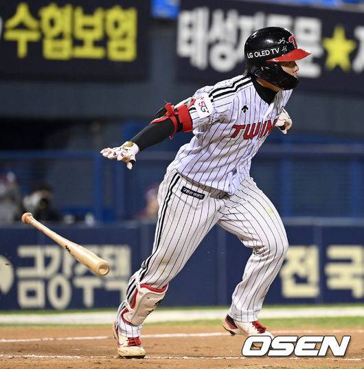 6회말 1사 2루 상황 LG 문성주가 추격의 1타점 적시타를 날리고 있다. / dreamer@osen.co.kr