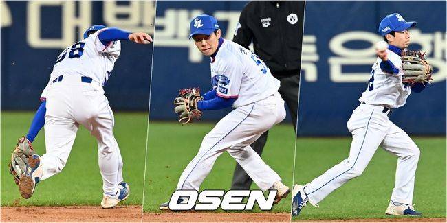 2회초 두산 선두타자 페르난데스의 유격수 앞 땅볼때 삼성 유격수 김지찬이 1루로 러닝스로를 하고 있다. 2021.10.19 / rumi@osen.co.kr