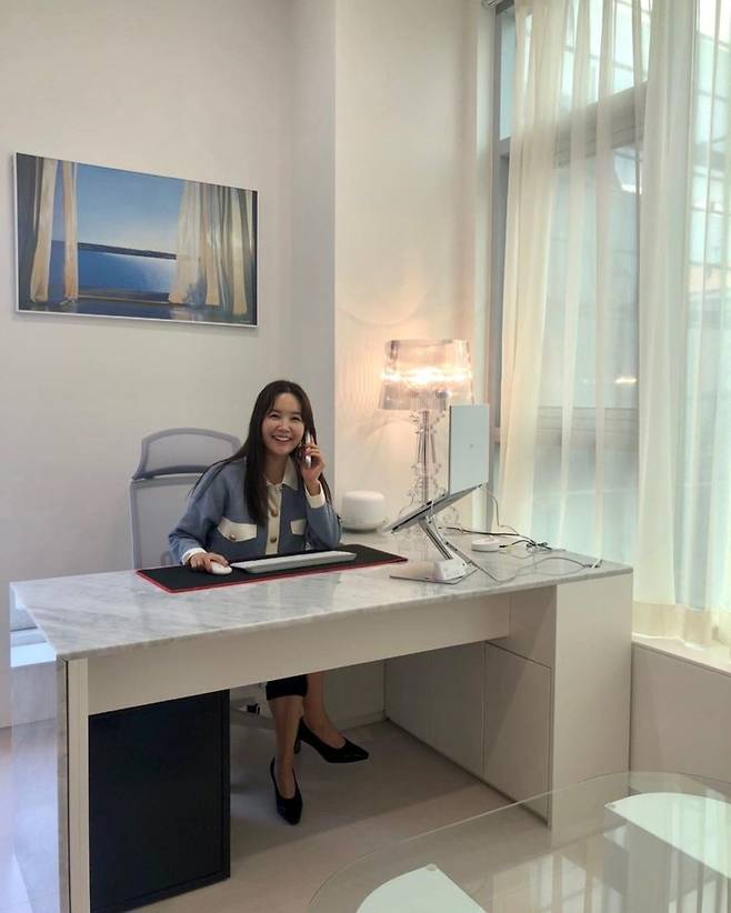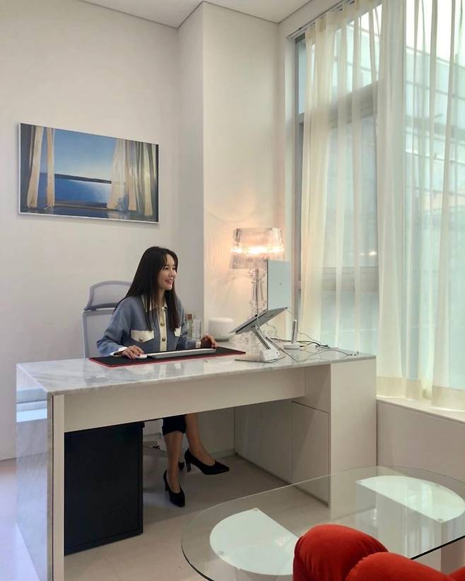 밝은 매력 가득한 장영란은 모던한 사무실 분위기와 어우러져 에너지 넘치는 커리어우먼 매력을 자아냈다.