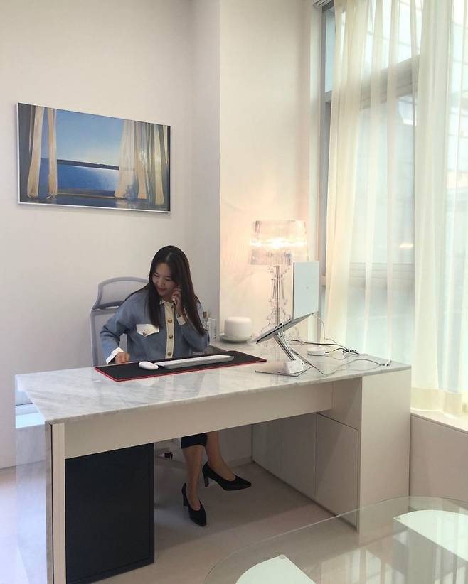 사진엔 사무실 테이블에 앉은 장영란의 모습이 담겼다.