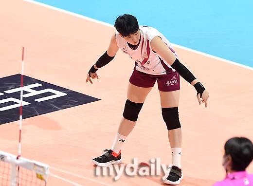 [마이데일리 = 광주 유진형 기자] KGC 인삼공사 이소영이 19일 오후 광주광역시 페퍼 스타디움에서 진행된 '2021-2022 도드람 V리그' AI 페퍼스와 KGC 인삼공사의 경기에서 준비를 하고 있다.