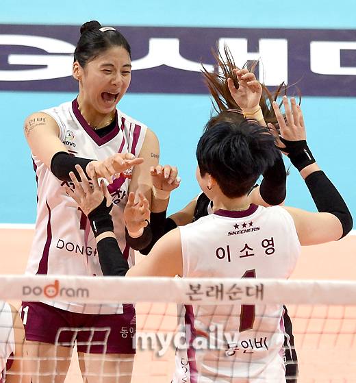 [마이데일리 = 광주 유진형 기자] KGC 인삼공사 박혜민과 이소영이 19일 오후 광주광역시 페퍼 스타디움에서 진행된 '2021-2022 도드람 V리그' AI 페퍼스와 KGC 인삼공사의 경기에서 세트 스코어 3-1(16-25 25-20 25-21 25-17)로 승리한 뒤 기뻐하고 있다.