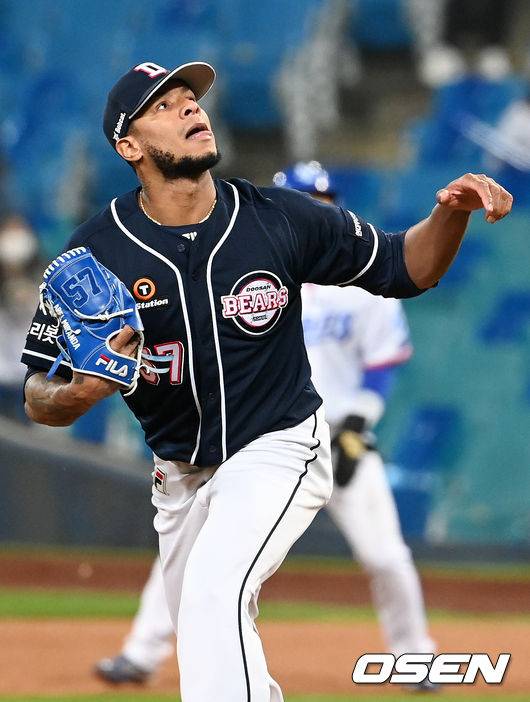 7회말 2사 주자 1루 두산 선발 미란다가 삼성 김헌곤을 뜬공으로 잡고 있다. 2021.10.19 / rumi@osen.co.kr