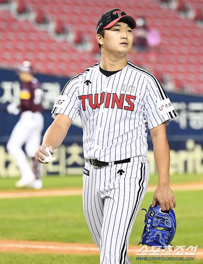 2021 KBO리그 LG 트윈스와 키움 히어로즈의 경기가 19일 잠실구장에서 열렸다. 9회초 LG 고우석이 이닝을 마친 뒤 숨을 고르고 있다. 잠실=박재만 기자 pjm@sportschosun.com/2021.10.19/