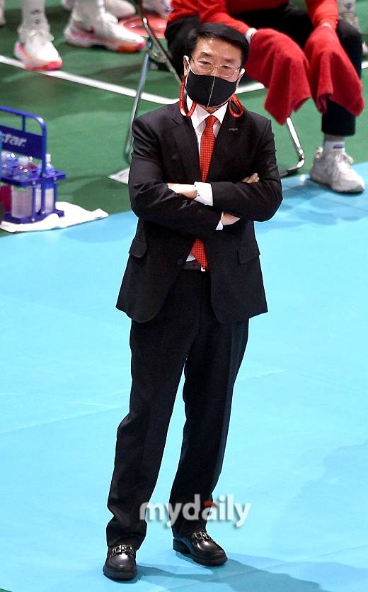 [AI 페퍼스 김형실 감독이 19일 오후 광주광역시 페퍼 스타디움에서 진행된 '2021-2022 도드람 V리그' AI 페퍼스와 KGC 인삼공사의 경기를 지켜보고 있다. 사진 = 광주 유진형 기자 zolong@mydaily.co.kr]- ⓒ마이데일리(www.mydaily.co.kr). 무단전재&재배포 금지 -