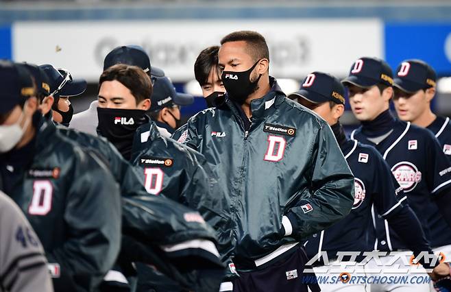19일 대구 삼성라이온즈파크에서 KBO리그 삼성과 두산의 경기가 열렸다. 두산이 삼성에 승리했다. 경기 종료 후 승리의 기쁨을 나누고 있는 두산 선수들. 대구=송정헌 기자 songs@sportschosun.com/2021.10.19/