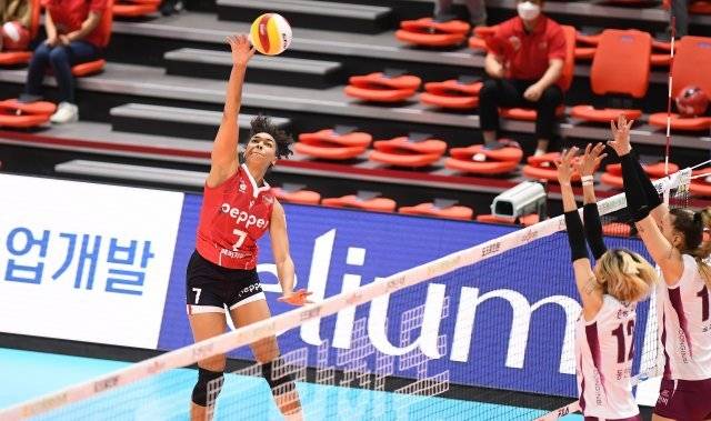 외국인 드래프트 전체 1순위로 페퍼저축은행 유니폼을 입은 엘리자벳(22)은 이날 1세트에t서 6득점을 하는 등 양 팀 최다인 22득점(공격성공률 36.36%)을 올렸다.