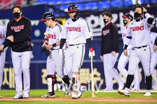 [마이데일리 = 곽경훈 기자] LG가 19일 오후 서울 잠실야구장에서 진행된 '2021 신한은행 SOL KBO리그' 키움-LG의 경기에서 5-4로 패배한 뒤 아쉬워 하고 있다.