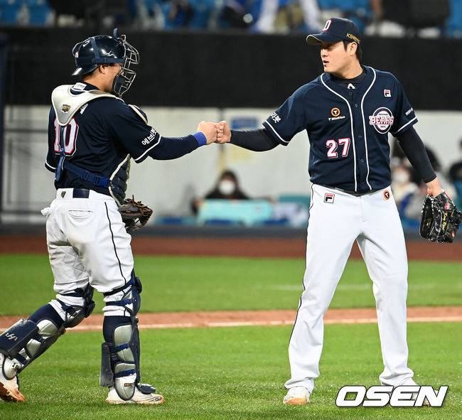 경기를 마치고 두산 김강률이 기뻐하고 있다.2021.10.19 / rumi@osen.co.kr