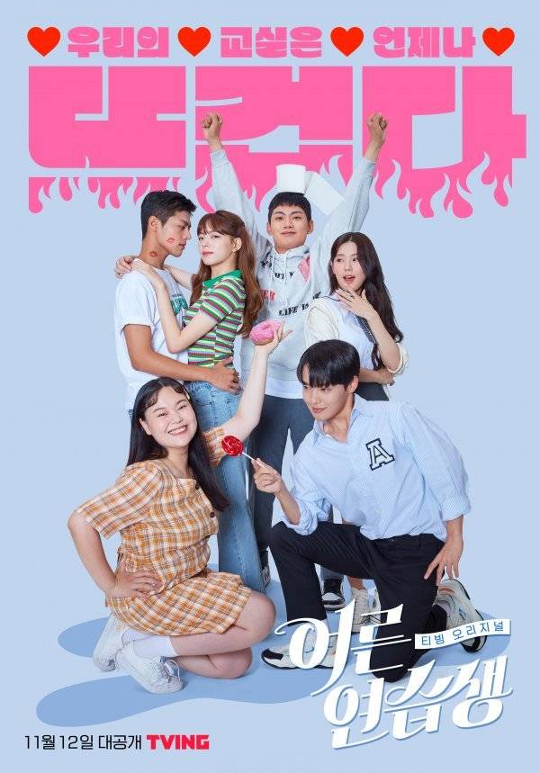 이날 공개된 메인 포스터는 발칙한 ‘빨간맛’ 상상력을 자극한다. ‘우리의 교실은 언제나 뜨겁다’라는 아찔한 카피가 요즘 10대들의 사랑과 고민에 대한 호기심을 증폭시키기에 충분하다. 먼저 머리에 휴지를 얹고 뿌듯한 표정으로 만세를 외치는 재민(류의현 분)과 새침한 예경(미연 분)의 대비가 흥미롭다. 남사친 남호(려운 분)에게 키스마크를 남기고 의기양양하게 정면을 응시하는 유라(조유정 분)의 도발, 유혹할 기세로 빨간 막대 사탕을 건네는 강준(김민기 분)과 날아갈 듯 세상 행복해하는 감수성 만렙의 소녀 나은(권영은 분)까지 세 가지 에피소드를 함축적으로 담아내 이제껏 본 적 없는 하이틴 코미디의 탄생을 기대하게 한다.