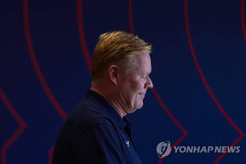 epaselect epa09532074 FC Barcelona's head coach Ronald Koeman smiles during a press conference at Joan Gamper Sports City in Barcelona, Spain, 19 October 2021. FC Barcelona will face Dynamo Kiev in their UEFA Champions League group E soccer match on 20 October 2021. EPA/Alejandro Garcia