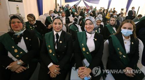 epaselect epa09532049 The swearing in ceremony of the newly appointed 98 female members of the State Lawsuits Authority at the State Council headquarters in Giza, Egypt, 19 October 2021. Egypt?s president Abdel-Fattah El-Sisi has previously announced in June that women can work at the State Council and the Public Prosecution for the first time in the country?s history starting 01 October. A landmark presidential decree has been issued on 04 October declaring 48 women from the State Lawsuits Authority and the Administrative Prosecution and 50 women from the State Lawsuits Authority and the Administrative Prosecution will begin their work as assistant counselors and deputies at the State Council respectively. In spite of the fact that there are a number of women working in judicial positions, no woman has ever been appointed as a judge at the State Council and the Public Prosecution before. EPA/KHALED ELFIQI