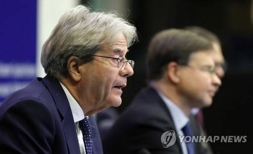 epa09532201 European Commissioner for Economy Paolo Gentiloni (L) and European Commission Executive Vice-President Valdis Dombrovskis (R) attend a press conference of read-out the College meeting at the European Parliament in Strasbourg, France, 19 October 2021. EPA/RONALD WITTEK / POOL