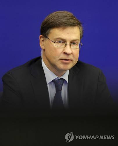 epa09532209 European Commission Executive Vice-President Valdis Dombrovskis attends a press conference of read-out the College meeting at the European Parliament in Strasbourg, France, 19 October 2021. EPA/RONALD WITTEK / POOL