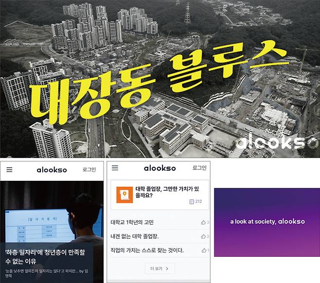 지난달 30일 하루 100명에게 1만원씩 주는 프로젝트를 실험하며 이용자들을 끌어들인 얼룩소가 지난 14일 첫 오리지널 콘텐츠 ‘대장동 블루스’를 내놨다.(사진 위) 얼룩소에선 소소한 일상과 관심사를 공유하는 토픽부터 다소 진지하고 무거운 주제까지 다양한 토픽이 주어지고, 이에 대해 이용자(얼룩커)들이 의견을 나누며 공론장을 만들어 간다.