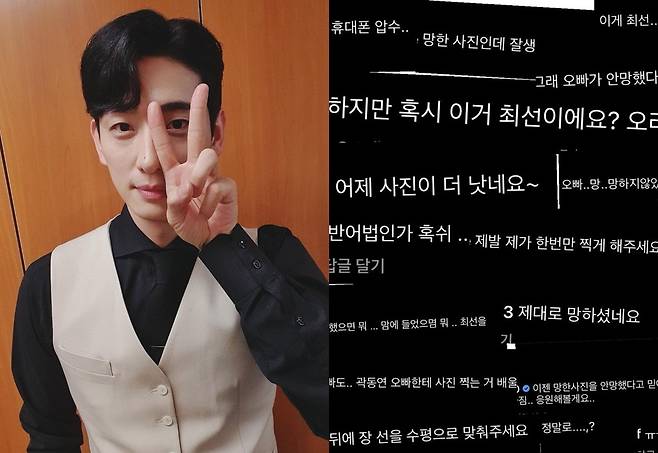 여기에 배우 곽동연은 "이젠 망한 사진을 안 망했다고 믿어 버리기로 한 형의 다짐.. 응원해볼게요.."라며 안타까운 마음을 드러냈다. 공승연 또한 "망한거 같은데"라고 콕집어 이야기했다.
