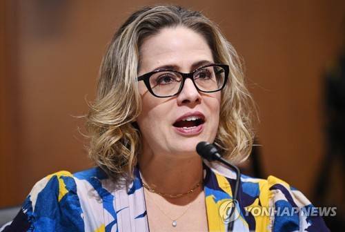 epa09532231 Senator Kyrsten Sinema, D-AZ, speaks during the Senate Finance Committee hearing on the nomination of Chris Magnus to be the next US Customs and Border Protection commissioner in the Dirksen Senate Office Building on Capitol Hill in Washington, DC, US, 19 October 2021. EPA/MANDEL NGAN / POOL / POOL