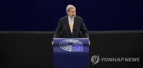 epa09532248 European Commissioner for Budget and Administration Johannes Hahn delivers a speech during a debate on 'General budget of the European Union for the financial year 2022' at the European Parliament in Strasbourg, France, 19 October 2021. EPA/RONALD WITTEK / POOL