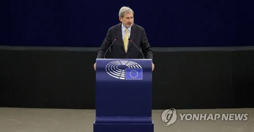 epa09532249 European Commissioner for Budget and Administration Johannes Hahn delivers a speech during a debate on 'General budget of the European Union for the financial year 2022' at the European Parliament in Strasbourg, France, 19 October 2021. EPA/RONALD WITTEK / POOL