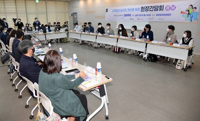 경상남도와 대통령직속 국가균형발전위원회는 19일 창원시 상남동에 위치한 청년일자리프렌즈 마루홀에서 ‘지역청년 일자리 개선을 위한 현장간담회’를 개최했다.