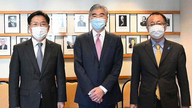 전날과 이날 한미, 한미일 간에 연속 협의를 가진 데 이어 성김 국무부 대북특별대표는 이번 주 또다시 방한해 종전선언 등을 놓고 머리를 맞댑니다.