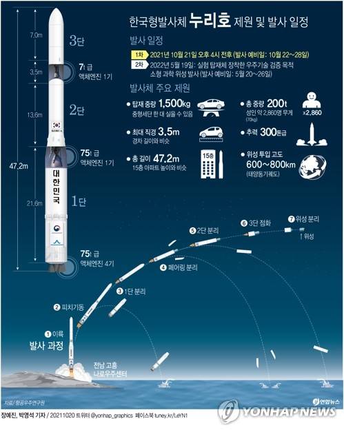 [그래픽] 한국형발사체 누리호 제원 및 발사 후 과정