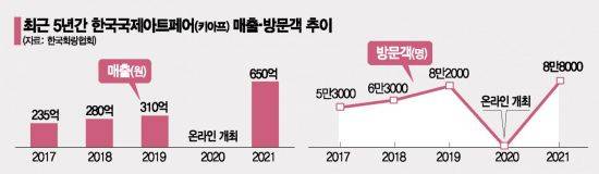 [아시아경제 최동현 기자] 국내 최대 미술장터인 한국국제아트페어(키아프)가 매출 650억원이라는 국내 아트페어 역사상 최고 성적으로 폐막했다. 흥행 요인은 시중에 넘쳐나는 유동성과 MZ세대(밀레니얼+Z세대) 컬렉터의 시장 진입, 아시아 미술시장 재편 과정에서 서울의 매력도 상승 등으로 요약된다. 다만 역대급 흥행 분위기에 가려진 국내 미술계가 해결해야 할 과제도 산더미다. 업계 고유의 폐쇄성과 정보 비대칭성 등 해묵은 문제들이 해결되지 않으면 ‘K-아트’는 그저 공염불에 그칠 것이라는 게 전문가들의 평가다.