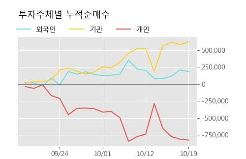 지난 한달을 기준으로 보면 외국인이 21.4만주를 순매수했고, 기관도 58.9만주를 순매수했다. 반면 개인들은 81.6만주를 순매도한 것으로 나타났다. 같은 기간 이 종목의 거래비중은 외국인과 개인이 각각 13.3%, 79.2%로 비중이 높다.