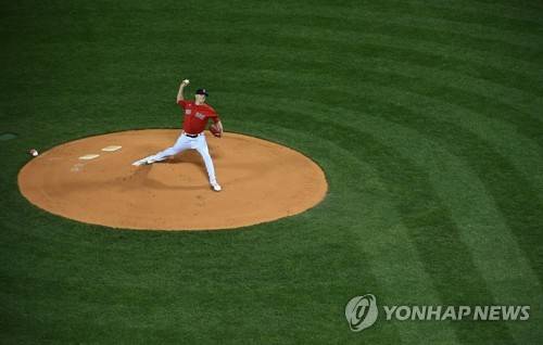 epa09533276 Boston Red Sox pitcher Nick Pivetta throws against the Houston Astros in the top of the first inning of game four of the MLB American League Championship Series between the Boston Red Sox and the Houston Astros at Fenway Park in Boston, Massachusetts, USA, 19 October 2021. EPA/JOHN CETRINO