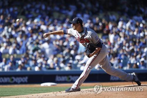 epa09533292 Atlanta Braves starting pitcher Charlie Morton releases a pitch against the Los Angeles Dodgers during the first inning of game 3 of the National League Championship Series MLB playoff baseball game between the Atlanta Braves and the Los Angeles Dodgers at Dodgers Stadium in Los Angeles, California, USA, 19 October 2021. EPA/CAROLINE BREHMAN