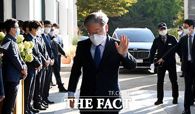 [더팩트ㅣ임영무 기자] 더불어민주당 대선 후보인 이재명 경기도 지사가 20일 오전 국회 국토교통위원회의 경기도에 대한 국정감사를 앞두고 경기도 수원시 경기도청으로 출근하고 있다.