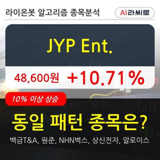 JYP Ent., 전일대비 10.71% 상승.. 이 시각 거래량 190만4102주
