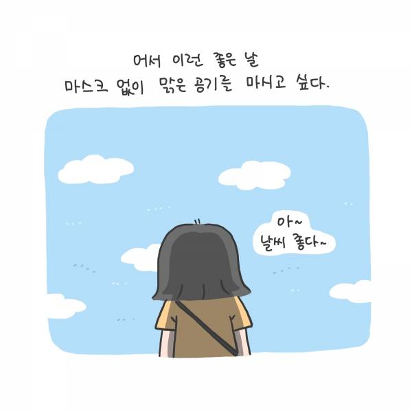어서 이런 좋을 날 마스크 없이 맑은 공기를 마시고 싶다.