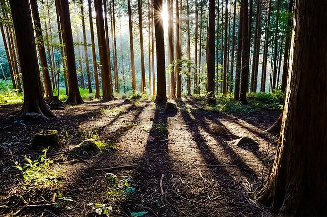 ○ 장성 축령산의 명물은 국내 최대의 편백나무 숲으로, 이로 인해 축령산은 산림욕과 산림치유의 명소로 각광받고 있다.
