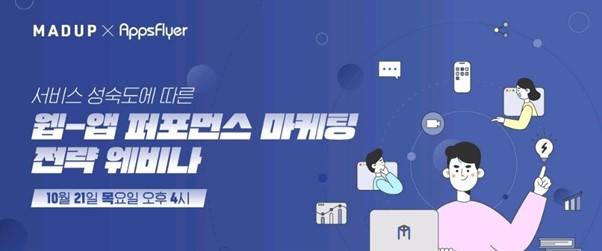 매드업은 21일 목요일 오후 4시 광고대행사 최초로 앱스플라이어와 '서비스 성숙도에 따른 웹-앱 통합 퍼포먼스 마케팅 전략'이란 주제로 웨비나를 개최한다고 밝혔다.
