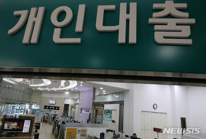 [서울=뉴시스] 백동현 기자 = 하나은행이 가계대출 총량 관리를 위해 일부 대출상품의 신규 신청을 중단한 20일 오전 서울 중구 하나은행 영업부에서 고객들이 상담을 받고 있다. 2021.10.20. livertrent@newsis.com