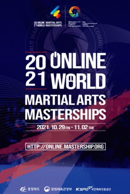 Hosted by Chungcheongbuk-do and WMC, organized by WMC and sponsored by the Ministry of Culture, Sports and Tourism, and the Korea Sports Promotion Foundation, the 2021 Online World Martial Arts Masterships, under the patronage of UNESCO, is the first online international martial arts multi-games held for the purpose of overcoming the COVID-19 pandemic and promoting a continuous exchange of global martial artists.