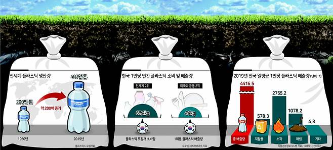 현재 해양은 물론 토양까지도 플라스틱의 공격에서 자유로운 곳은 없다. 신종 코로나바이러스 감염증(코로나19) 이후 일회용품 사용량이 급증하면서 플라스틱으로 인한 환경파괴는 더 가속화되고 있다.