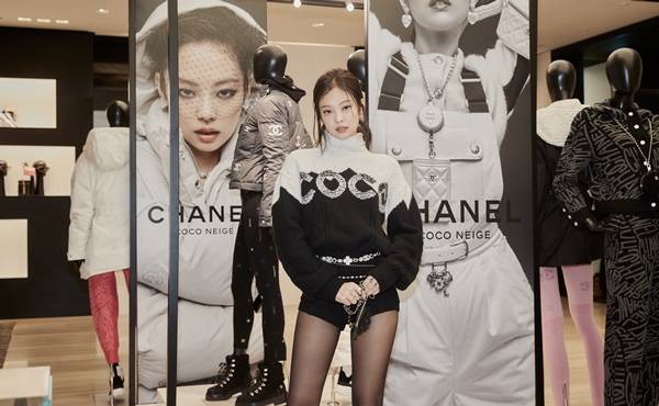 제니는 지난 18일 2021/22 코코 네쥬 컬렉션을 위해 단장된 샤넬 플래그십 부티크를 방문했다.