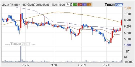 20일 오전 나노스(151910)가 급등세를 보이고 있다.